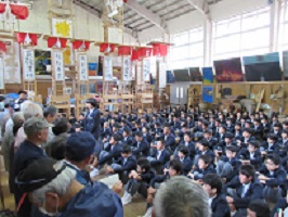 修学旅行2日目は、お世話になった民泊の方たちと離村式をし、