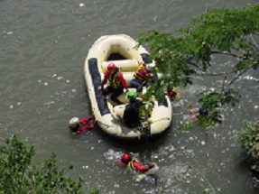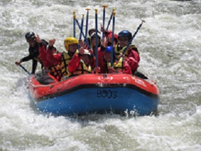 ラフティングは、6人乗りのボートで川を力を合わせてこぐスポーツです。