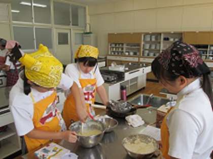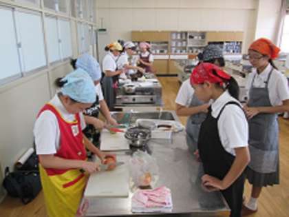 写真は家庭科部の活動の様子です。