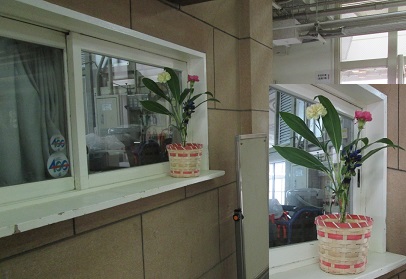 私は約一ヶ月間、学校の玄関に置いている花の水替えをしています。