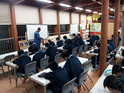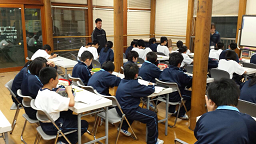 一泊移住〜研修〜 公開日 2014/04/30 更新日 2014/04/30 授業風景 中学校生活の規律やルールを、授業形式で楽しく学びました。 入学して約一か月を過ごした一年生、 学校のルールについての空欄補充形式の問題に、 積極的に答え、自らの知識を確認しつつも、 それを心に留めてくれているような雰囲気でした。 いいね(0)