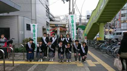 いくつかのエリアに分かれ、啓発グッズを配布し、