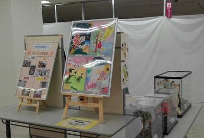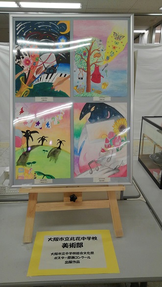 イオン高見店3階広場(エスカレーター上がってすぐ)にて毎月1日〜15日迄、高見小学校生涯学習ルーム参加者の方々の作品を展示しています。12月より此花中学校も出展させていただいています。今月も先月に引き続き美術部員の作品を展示しています。お買い物の際には、ぜひ3階まで足を運んでご覧になってください。