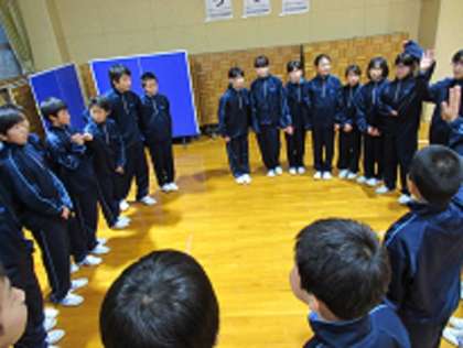 クラスごとに、大縄を跳ぶための作戦会議をしています。