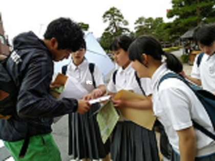 2年生の頃の校外学習でもミッションになった英語でのインタビューの様子です。