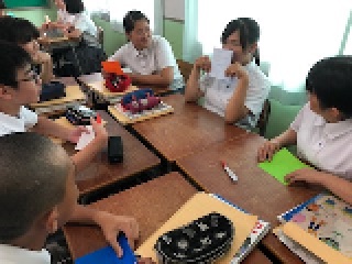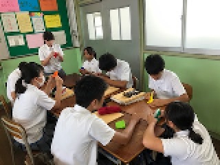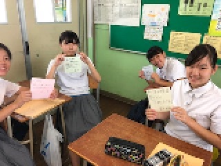 先日の平和学習と普段の授業を通し、本時は、平和宣言を折り紙に書き、互いに自分の宣言を聴き合い、その折り紙を使い鶴を一人ひとり折りました。