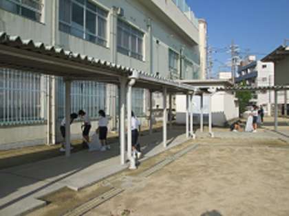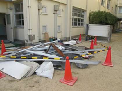 台風から一夜明けた今日の此花中学校の様子です。