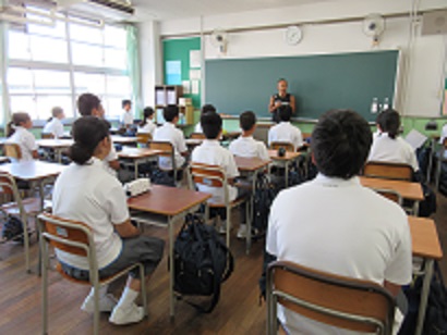 本日、1年生では津波避難訓練に向けての防災教育を行いました。