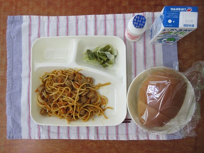 ・イタリアンスパゲッティ、グリーンアスパラガスとキャベツのサラダ、はっ酵乳