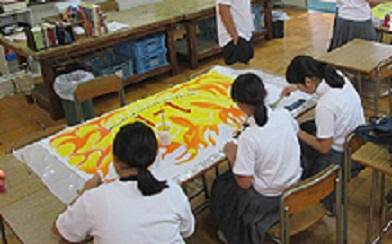 1年生は美術室で学級旗を制作しています。