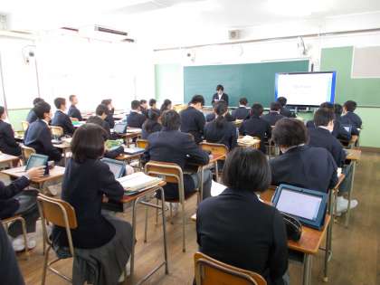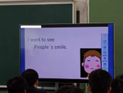 My Dream! 公開日 2018/11/14 更新日 2018/11/14 授業風景 2年生英語の授業では、それぞれがタブレットで「My Dream(私の夢)」をテーマにパワーポイントを作成しました。今日はその発表です。パワーポイントは力作ぞろいでしたが、みんなの前で発表するのはちょっと恥ずかしく声も小さめでした。発表を聞いていると将来の夢に向かってすでに勉強を始めている人もたくさんいるようです。みんなの夢が叶うといいですね。 いいね(0)