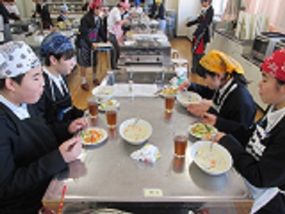 12月18日(火) 1年調理実習 公開日 2018/12/18 更新日 2018/12/18 授業風景 1年生の中学校でのはじめての調理実習は ホワイトシチューと温野菜サラダをつくりました。 実習前は「市販のルーを使わずにシチューができるの!?」 などという声も聞こえていましたが、寒い季節にぴったりな おいしいシチューが出来上がりました。 いいね(0)