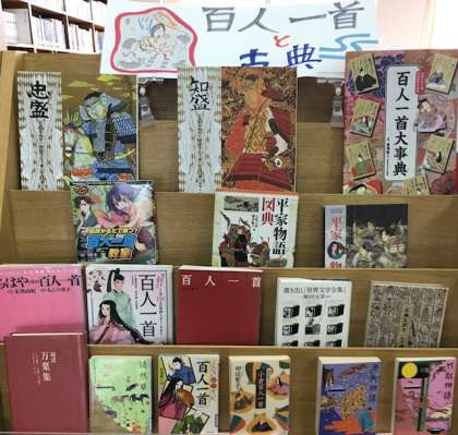今月末に百人一首大会が行われます。そこで、百人一首コーナーを図書室に設置しました。