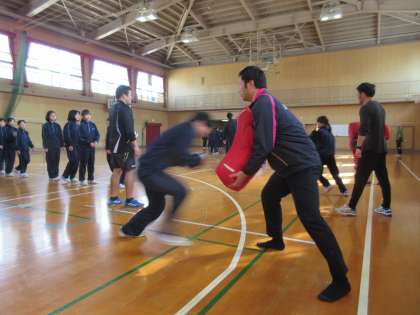 そして、パス・キック・タックル・リフトなどの見本を見た後、実際に各パートに分かれて体験をさせていただきました。