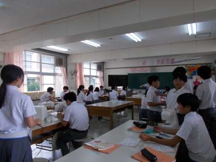 ミシンは綺麗に縫ってくれる便利な機械ですが、扱い方次第で怪我をしてしまう危険性があるので、先生からの説明をしっかりと受けて作業に取りかかります。