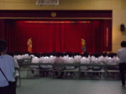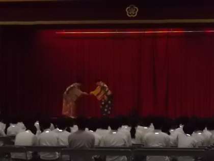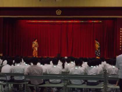 生徒たちから時々笑いが起こったり、真剣に見ている様子が見受けられ、伝統芸能の良さを知り、楽しい有意義な時間を過ごしています。