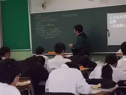 1年社会 公開日 2025/11/07 更新日 2025/11/07 授業風景 1年の社会は歴史で内容は武士の世の終わりです。先生が板書したことを生徒たちが一生懸命ノートに書き写しています。生徒たちがノートを書き終えたことを確認すると現代も歴史も生きていく上で「ルールを守る大切さをキーワード」に、歴史の授業に交えながら社会を生きるためのお話をしてくれています。 いいね(0)