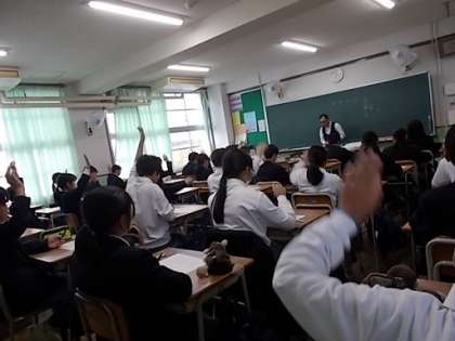 1年国語 公開日 2025/11/12 更新日 2025/11/12 授業風景 国語の授業で、プリント学習をしています。芥川龍之介の作品はどれ?という問いに生徒全員が参加して手を挙げ、正解が続出しています。 また、坊ちゃんは誰の作品ですか、との先生の問いに当てられた生徒が夏目漱石と答えていました。 他にも擬音語と擬態語の違いなどを学習しました。 いいね(0)