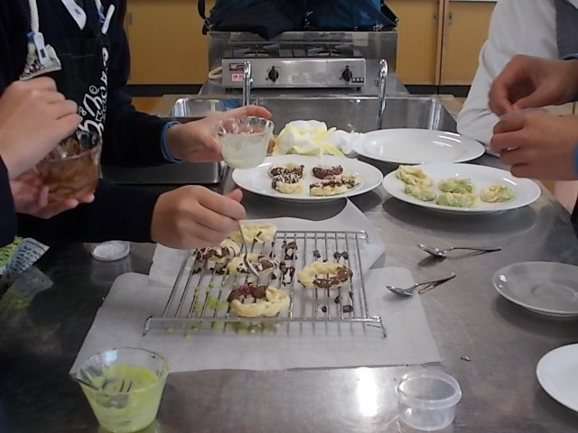 家庭科部 公開日 2025/12/17 更新日 2025/12/17 部活動 家庭科部で調理実習を行いました。今回作ったのは、クリスマスリースチョコパイです。パイ生地を編み込む手際の良さもさすがの家庭科部員でした👏3種類のチョコとカラフルなアラザンでデコレーションした素敵なリースが完成しました。 +1 いいね(0)