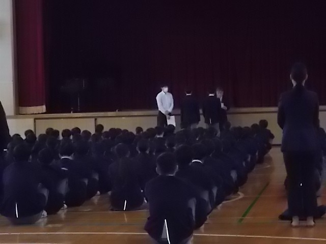 生徒指導主事の先生からのお話は、先生たちは保護者の次に見守っている大人だと思っている、主体的に動ける人間になってくれることを望んでいることを話してくれました。