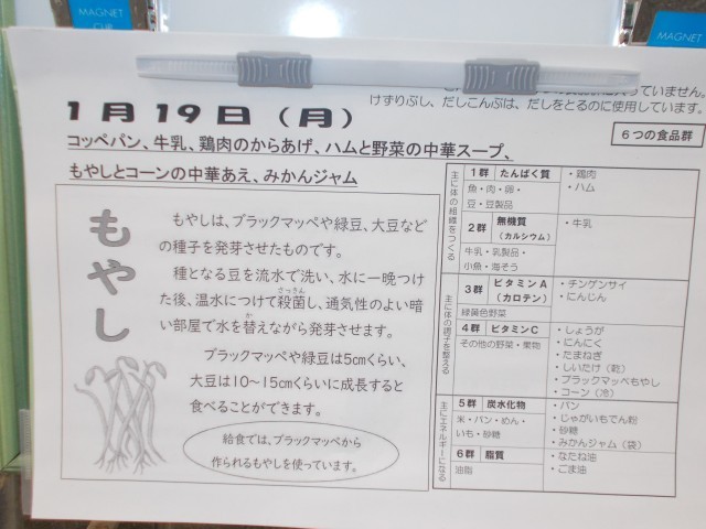 今日の給食は、コッペパン、牛乳、鶏肉の唐揚げ、ハムと野菜の中華スープ、もやしとコーンの中華和え、みかんジャムです。