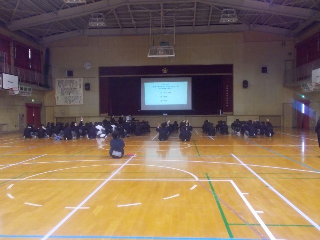 歯科校医の先生に来ていただいて、歯と口の健康に関する正しい知識を持ち、歯科疾患の予防に関する適切な習慣を身につけるためのお話しをしていただきました。