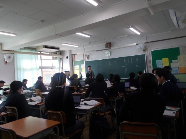 先生から『己の欲せざる所、人に施すこと勿れ』の勿れはどういう意味であるかと問われると、生徒からは「してはダメ」と返答があり、先生は生徒を褒め、返答への補足説明をしてくれています。終始先生から生徒への楽しい指摘があり、生徒たちは笑いながら、授業を受けていました。。