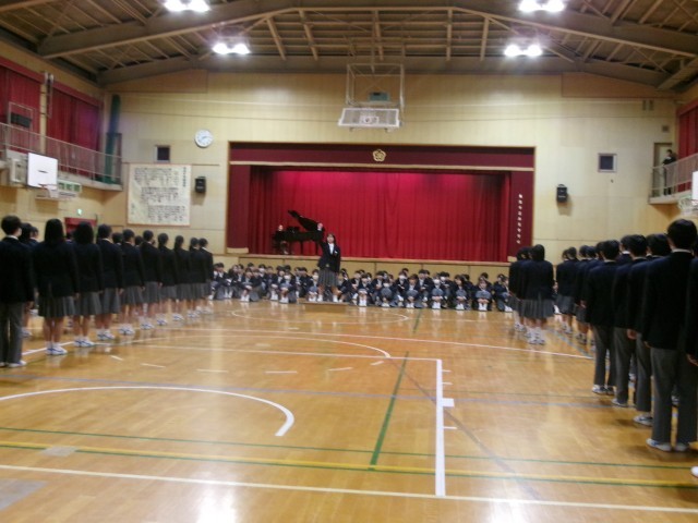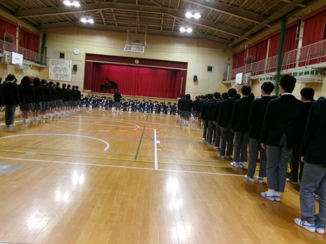 1・2年生は先に体育館へ到着し、3年生の入場を静かに待っていました。