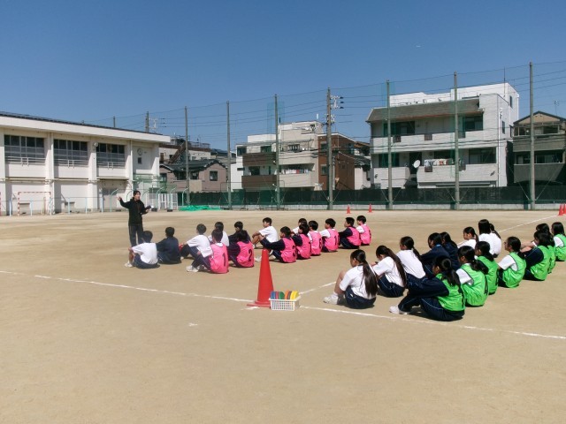 先生は競技を行う前にルールを教えてくれ、実際にアルティメットを行っている時にも生徒の様子を見守りながらアドバイスしてくれています。