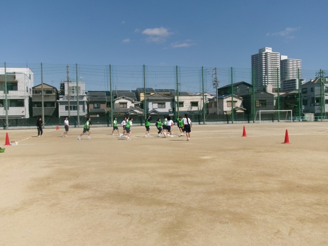 1年体育はアルティメットをしています。アメフトとバスケットボールを足して2で割ったようなスポーツと表現されることが多く、フライディングディスクを使って行う競技です。