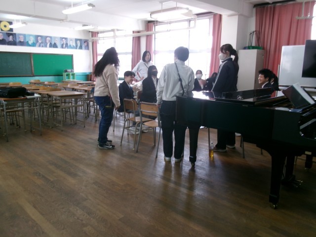 音楽部は、卒業生に感謝の気持ちをこめて寄せ書きの色紙を作っています。