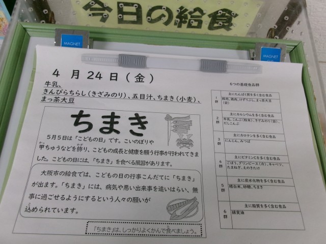 大阪市の給食では、こどもの日の行事献立に「ちまき」が出ます。ちまきには、病気や悪い出来事を追い払い、無事に過ごせるようにするという人々の願いが込められています。