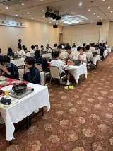 ホテルに到着後は、夕食です。みんなと食卓を囲んで、楽しく食事しています。