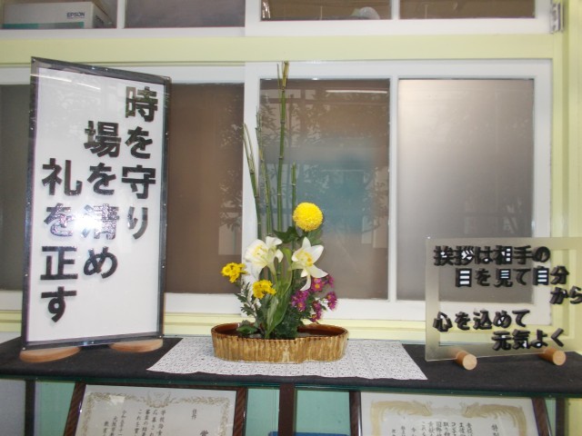 新しいお花に変わりました。始業式前に綺麗なお花を生けてくださってありがとうござい...