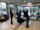民泊から帰ってきて、検温・消毒をして体育館に入っています。