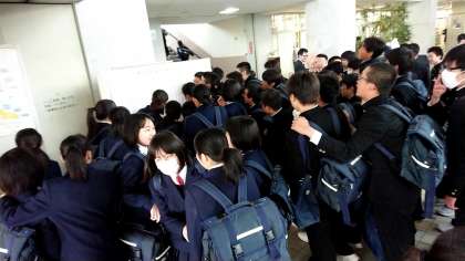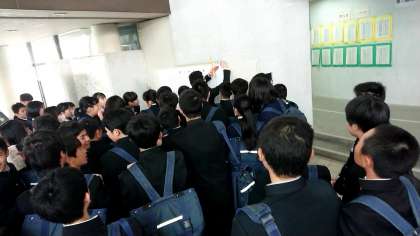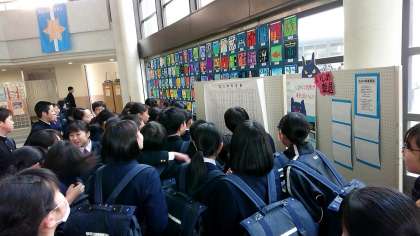 最終学年をむかえた新3年生のクラスが発表されました!ホールは大混雑です。32期生の皆さん新しいクラスでみんな頑張ってくださいね!