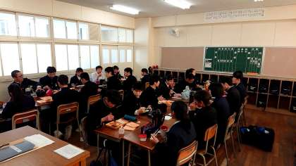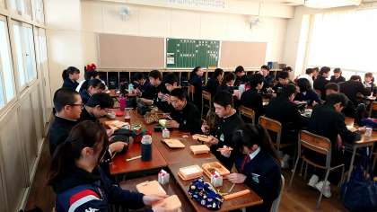 32期生の中心となる班活動の取り組みが始まるまでの間、どのように昼食をとるかを話し合いで決めた結果が「2列を引っ付けてみんな仲良く」となりました!副担任の楠田先生も一緒に楽しく昼食をとっています。いい新学期のスタートになっているようですね!