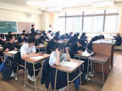 3年生は5限目の時間を使って視力検査を行っています。待っている時間を利用して「三年生の決意」という題で作文を書いています。文章で表現すること、また言葉で表現することは社会に出てもすごく大切な力となります。