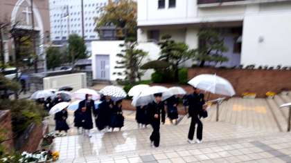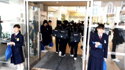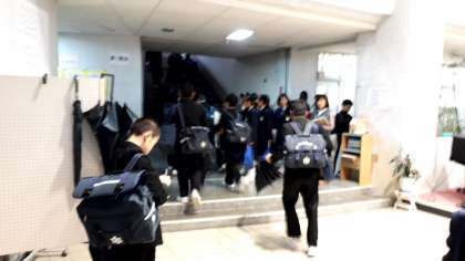 今日は学級写真撮影ですが、雨が降り続くとホールでの撮影となります。