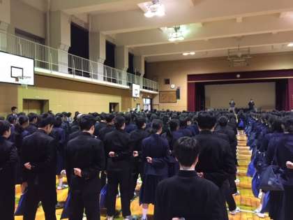 起立、礼、休めなどの一つ一つの動きについて確認しました。