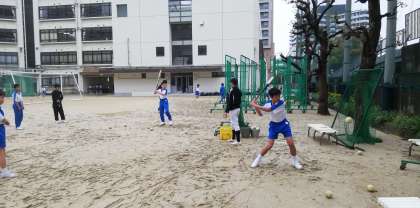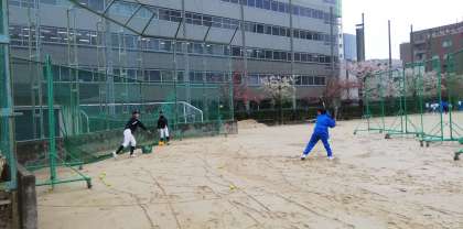 グランド状況は悪いですが、打撃練習に臨んでいます。