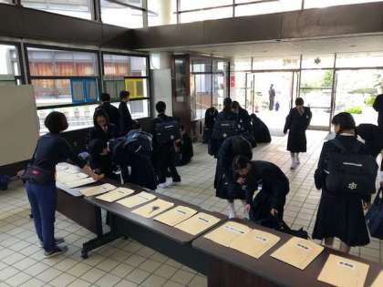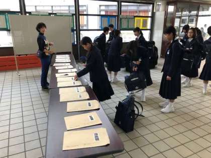 本日も1年生を対象にした部活動仮入部2日目が実施されます。申し込み場所の1階ホールは多くの1年生で賑わっています!