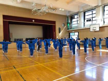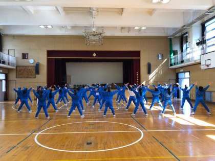 2年生の保健体育では、年度の初めとして集団行動に取り組んでいます。