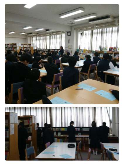 はじめに、図書館補助員の先生方の紹介がありました。次に、角井先生から図書室の利用の仕方や本の借り方、朝読書についての話がありました。