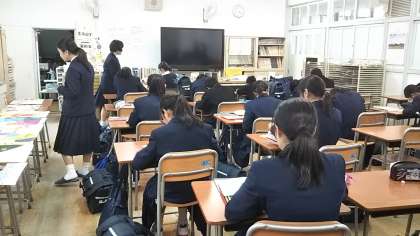 仮入部3日目はカレンダーづくりです。隣から聴こえてくる吹奏楽部の演奏をBGMに、みんな絵を描いています。