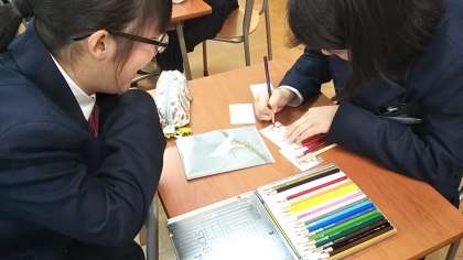 美術部はこんな感じで、お喋りしながら絵を描くことを中心に活動しています。興味をひかれた人はぜひ入部してください!