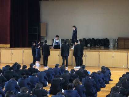 朝の学年集会では、学級代表は早く登校し、綿密に準備をして集会に臨んでいます。