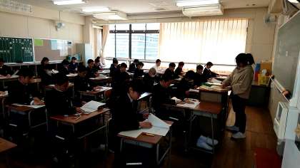 3限目は英語です。スタートは聞くこと=リスニングテストです!真剣に取り組んでいます。