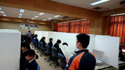 今年度から始まった、英語の話すこと=スピーキングに関する調査が行われています!写真は1組の様子です。