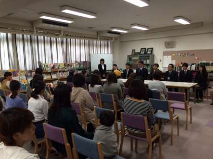図書室で、二年生になっての子供たちの様子を話し合っています。